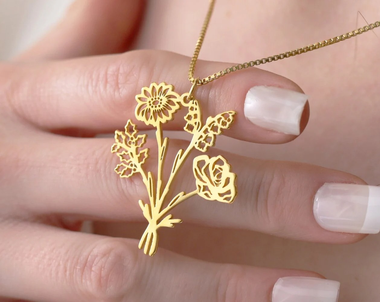Birth Flower Necklace For Mother's Day, Family Birth Flower Bouquet Necklace for Grandma, Family Necklace for Mom, Christmas Gift for Mom