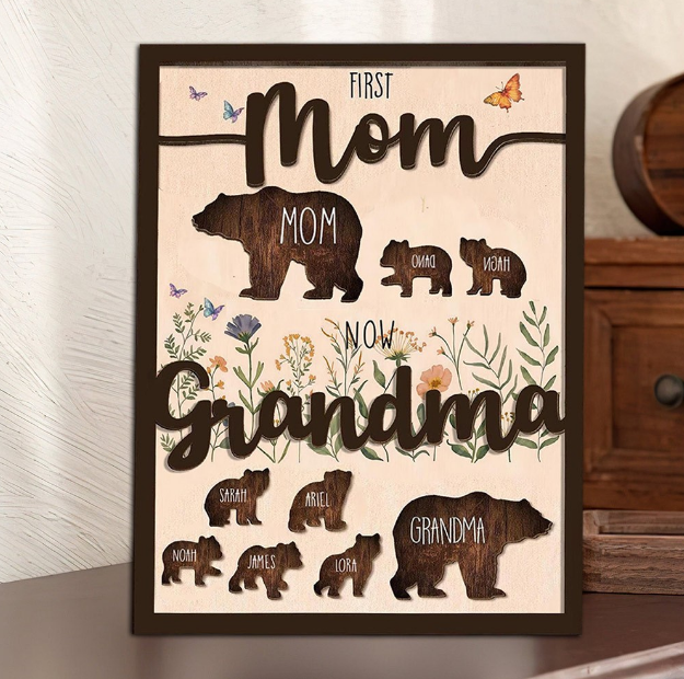 Custom First Mom Now Grandma Bear Sign, Personalized Grandma Gift with Grandchildren Names, Mothers Day Gift for Nana, Custom Family Bear Wall Decor, Grandma Birthday Gift