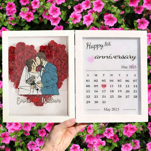 Custom Name Photo Anniversary Shadow Box, 3D Handmade Paper Rose Heart Frame, Personalized Wedding Valentine's Day Gift for Couple, Home Decor