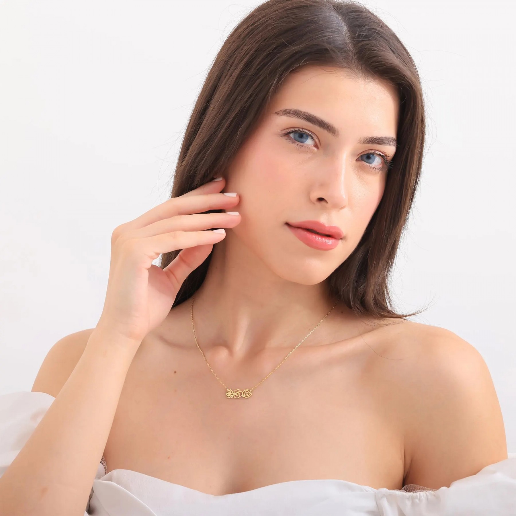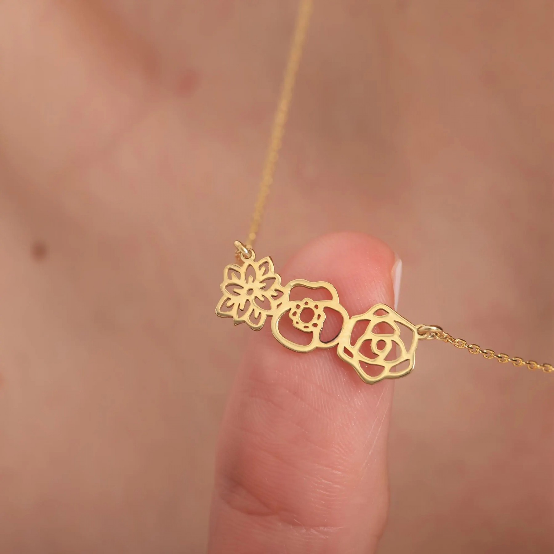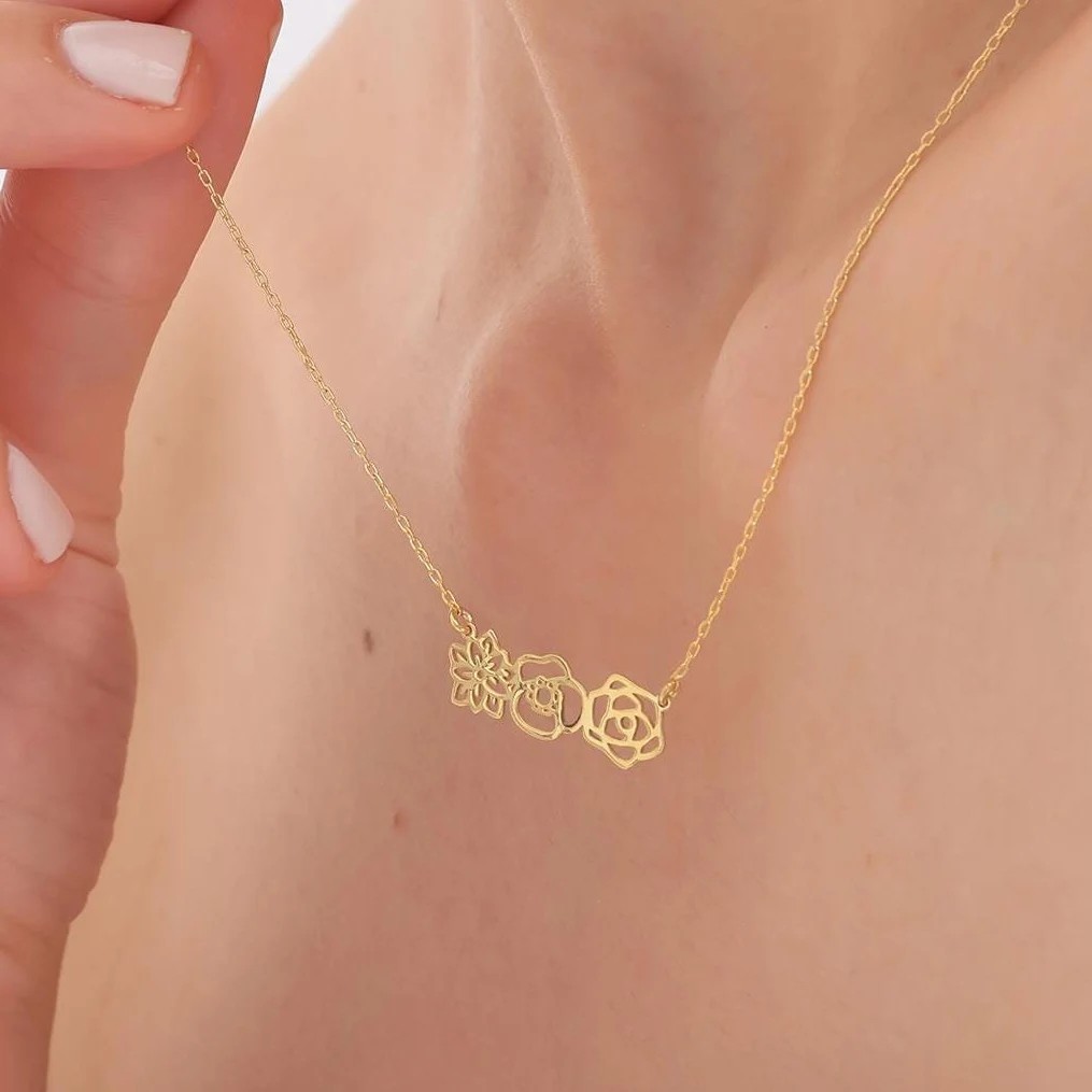 18K Gold Plated Three Flower Pendant Necklace | Minimalist Hollow Floral Jewelry for Women | Dainty Gift for Her