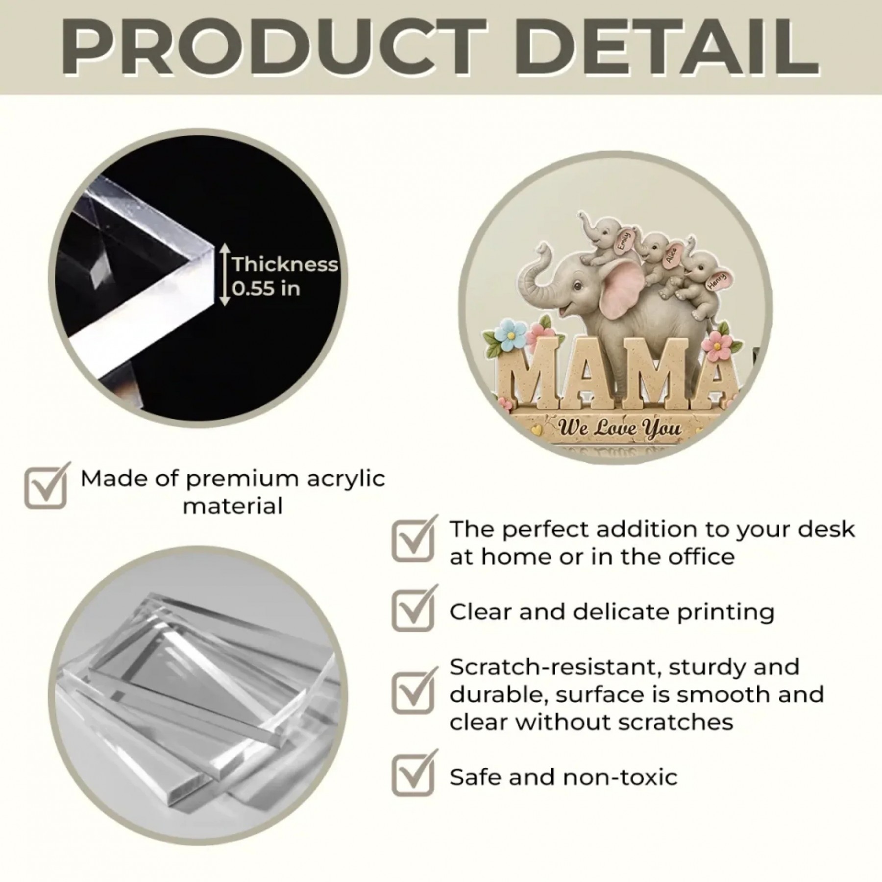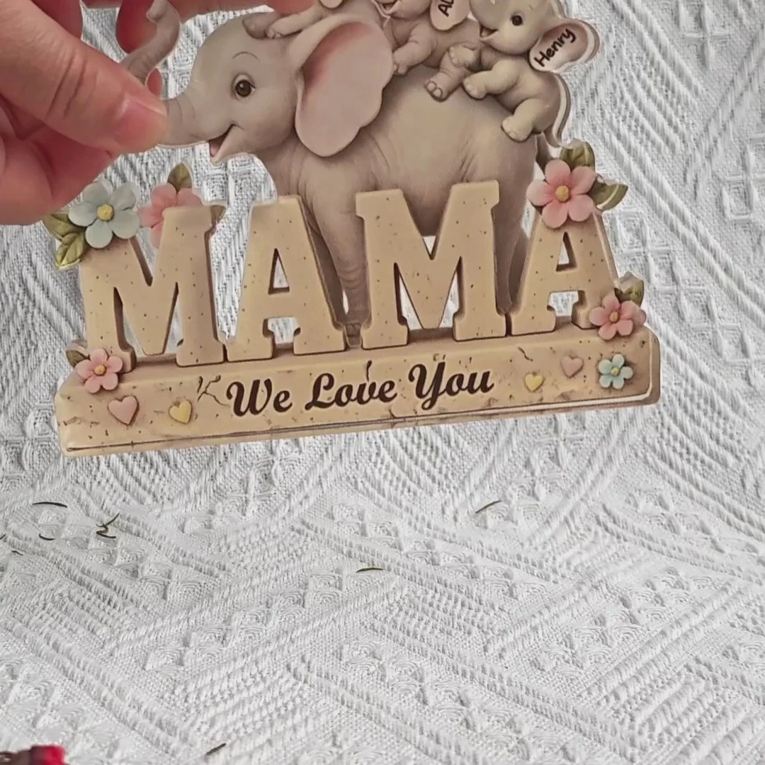 Personalized Mama Elephant Table Decor - Custom Kid Name Elephant Mom Sign, "I Love You" Mother's Day Gift, 2D Acrylic Sign with 3D Effect for Home Decor