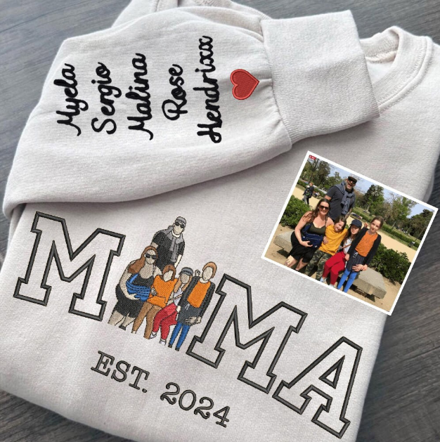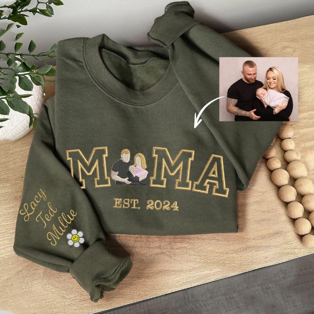 Personalized Mama Photo Embroidered Sweatshirt, Custom Kids Names & Est Year, Unique Mother's Day Gift for Mom