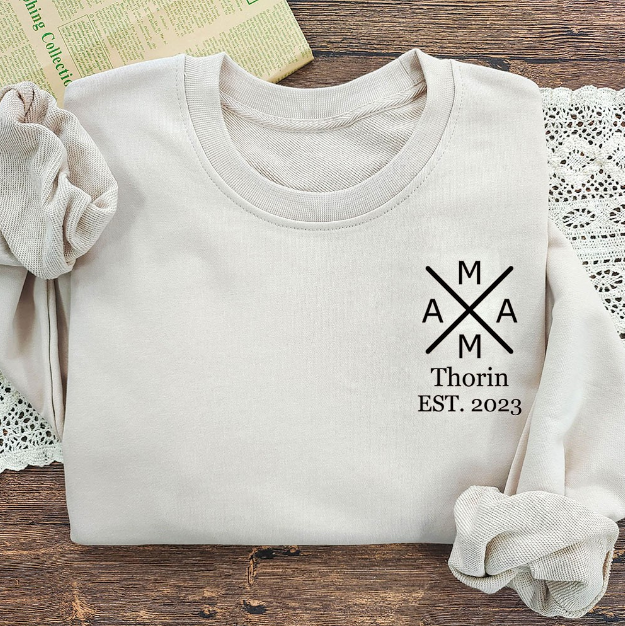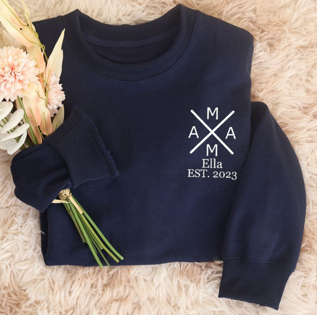 Custom MAMA Cross Sweatshirt, Personalized Mom Sweatshirt with Kid Name & Est. Year, Embroidered Minimalist Mom Gift for Mother's Day