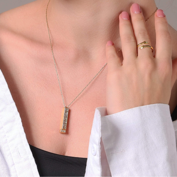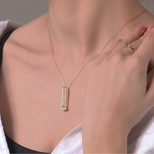 I Love You Hidden Message Bar Necklace for Mom, Pull Out Secret Pendant with Cubic Zirconia, Romantic Jewelry Gift for Her