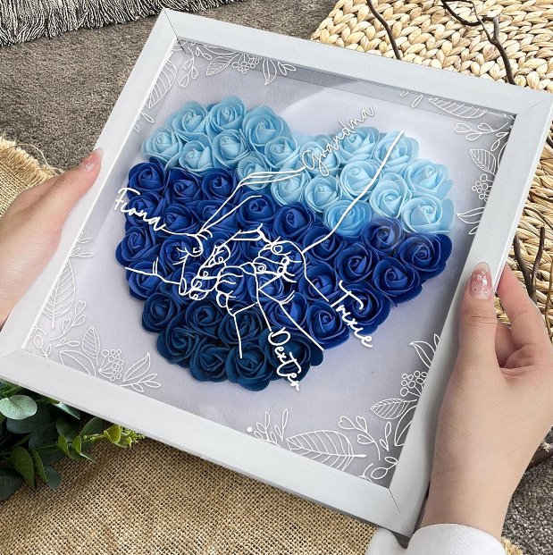Personalized Mom Hand Holding Shadow Box, Custom Name 3D Red Paper Rose Heart Frame with Kids Names, Handmade Mother's Day Birthday Gift for Mom, Family Wall Decor