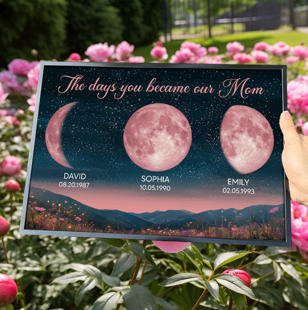 Personalized Moon Phase Poster The Days You Became Our Mom Custom Birth Date Moon Print Mothers Day Gift for Mom from Daughter Son Customized Night Sky Wall Art for Living Room Bedroom Decor