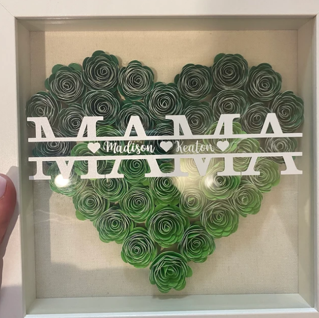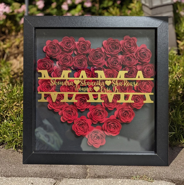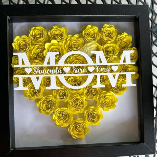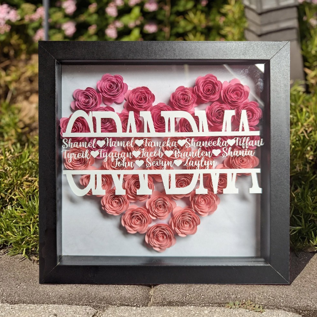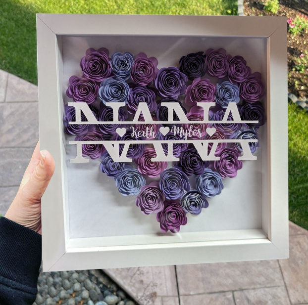 Personalized NANA Flower Shadow Box with Kids Names, Custom Purple Rose Heart Frame Wall Art, Handmade Mother's Day Birthday Gift for Grandma Nana