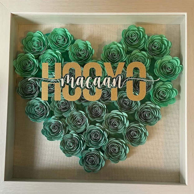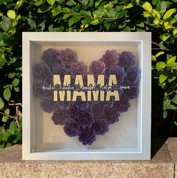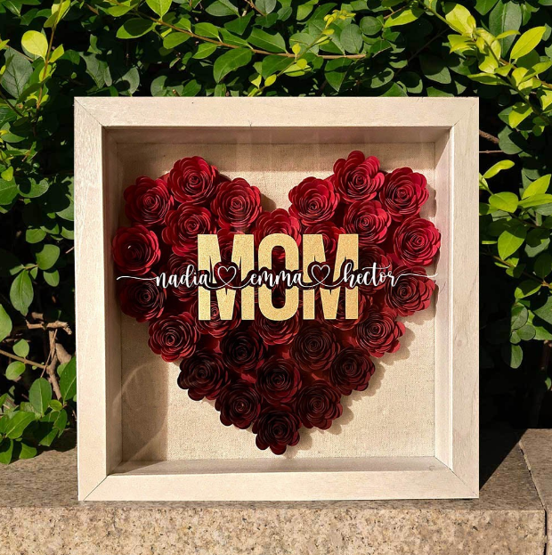 Personalized 3D Paper Rose Shadow Box for Mommy, Custom Name Heart-Shaped Flower Frame with Kids Names, Handmade Mother's Day Birthday Gift for Mom, Grandma, Home Wall Decor