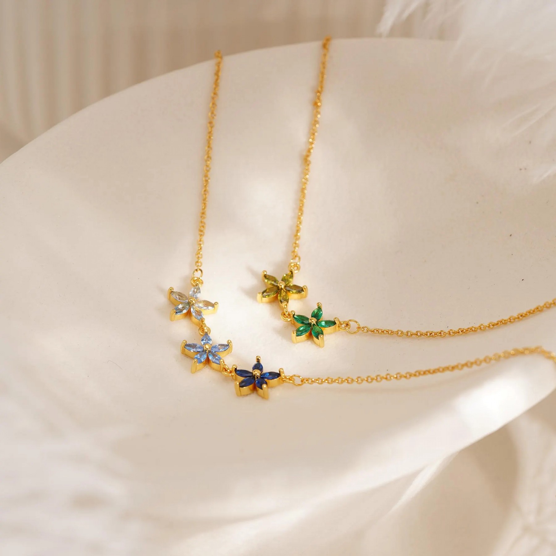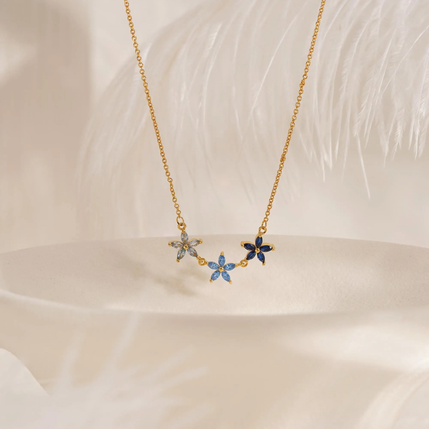 S925 Sterling Silver Three Star Flower Pendant Necklace | Dainty CZ Crystal Floral Choker for Women | Minimalist Delicate Jewelry Gift for Her